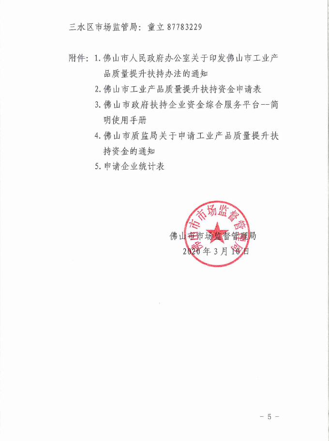 佛山市市场监督管理局关于做好2020年质量管理体系认证扶持资金申请工作的通知